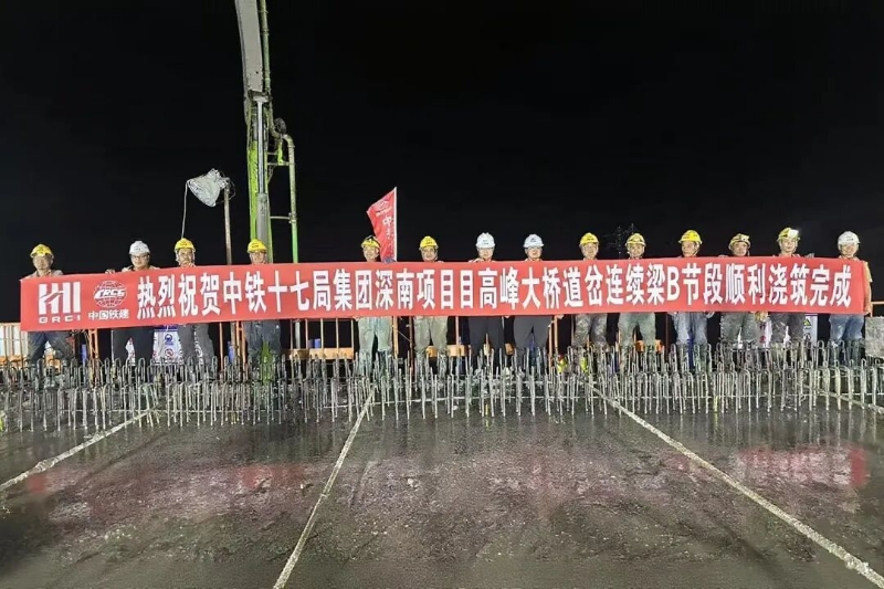 深南高鐵項目高峰大橋(中鐵十七局管段)道岔連續梁B節段順利澆筑完成