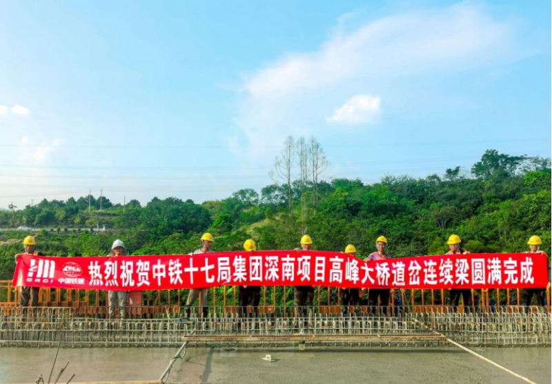 深南鐵路項目二工區(中鐵十七局管段)高峰大橋道岔連續梁順利澆筑完成